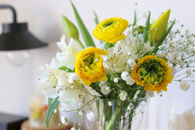 旬のスイートピーやチューリップ、爽やかなブプレリュームなどと組み合わせるとより可愛らしさが引き立ちます。週末にお花屋さんで茎の太いものを選び、花瓶に浅めのお水で飾ってみてください。水替えをこまめにすると1週間以上楽しめ、食卓や窓辺を季節感たっぷりに演出します。ふわふわと花びらが開いていく様子を見ているときっと心ときめき、癒しをくれるはず。