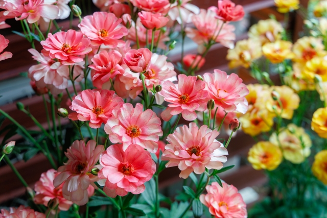花言葉は「晴れやかな魅力」や「魅力的」で、色別ではピンクが「飾らない美しさ」、黄色が「優しい心遣い」を表します。